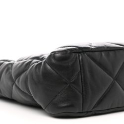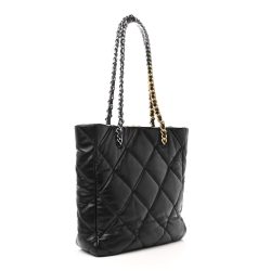 This is an authentic Luxury Luxury 19 Shopping Bag in Black. This stylish handbag is crafted of diamond- leather in black. The bag features leather threaded shoulder straps and a matching Luxury logo on the front. The open top with magnetic closure leads to a red fabric interior with a pocket.