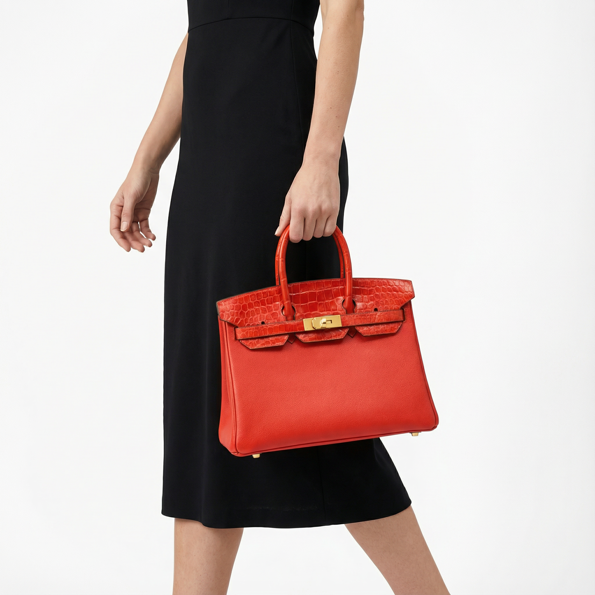 Birkin Touch 30 Togo And Shiny Crocodile Gold Hardware