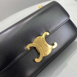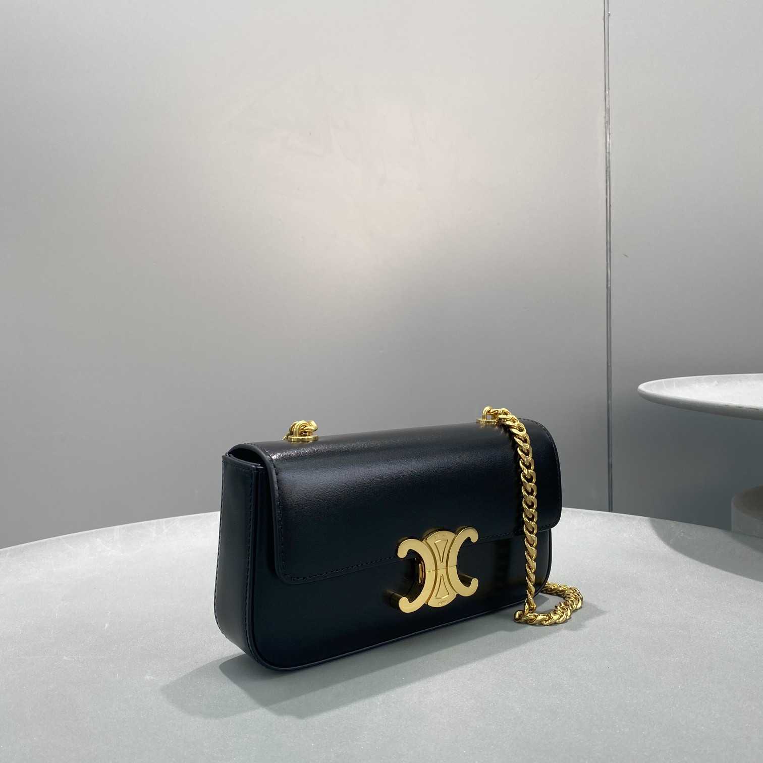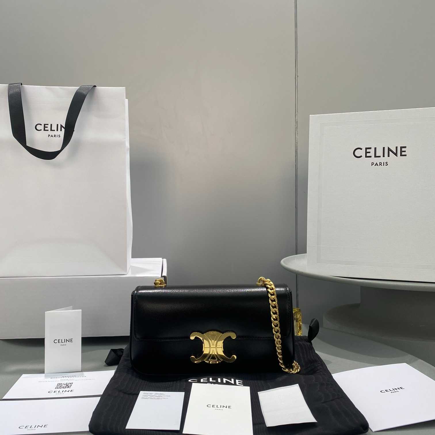 Celine Chain Box Triomphe Bag In Shiny Calfskin Black 197993Bf438No