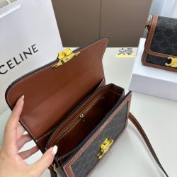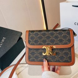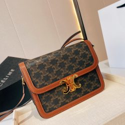 Celine Classique Triomphe Bag In Triomphe Canvas And Calfskin Tan 22Cm 191242Bz404Lu
