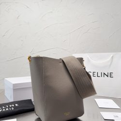 Celine Sangle Small Bucket Bag In Soft Grained Calfskin Gray Beige 26Cm