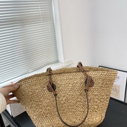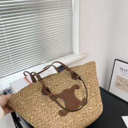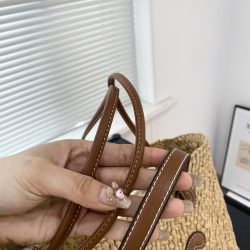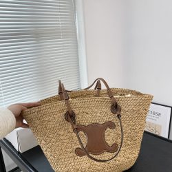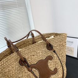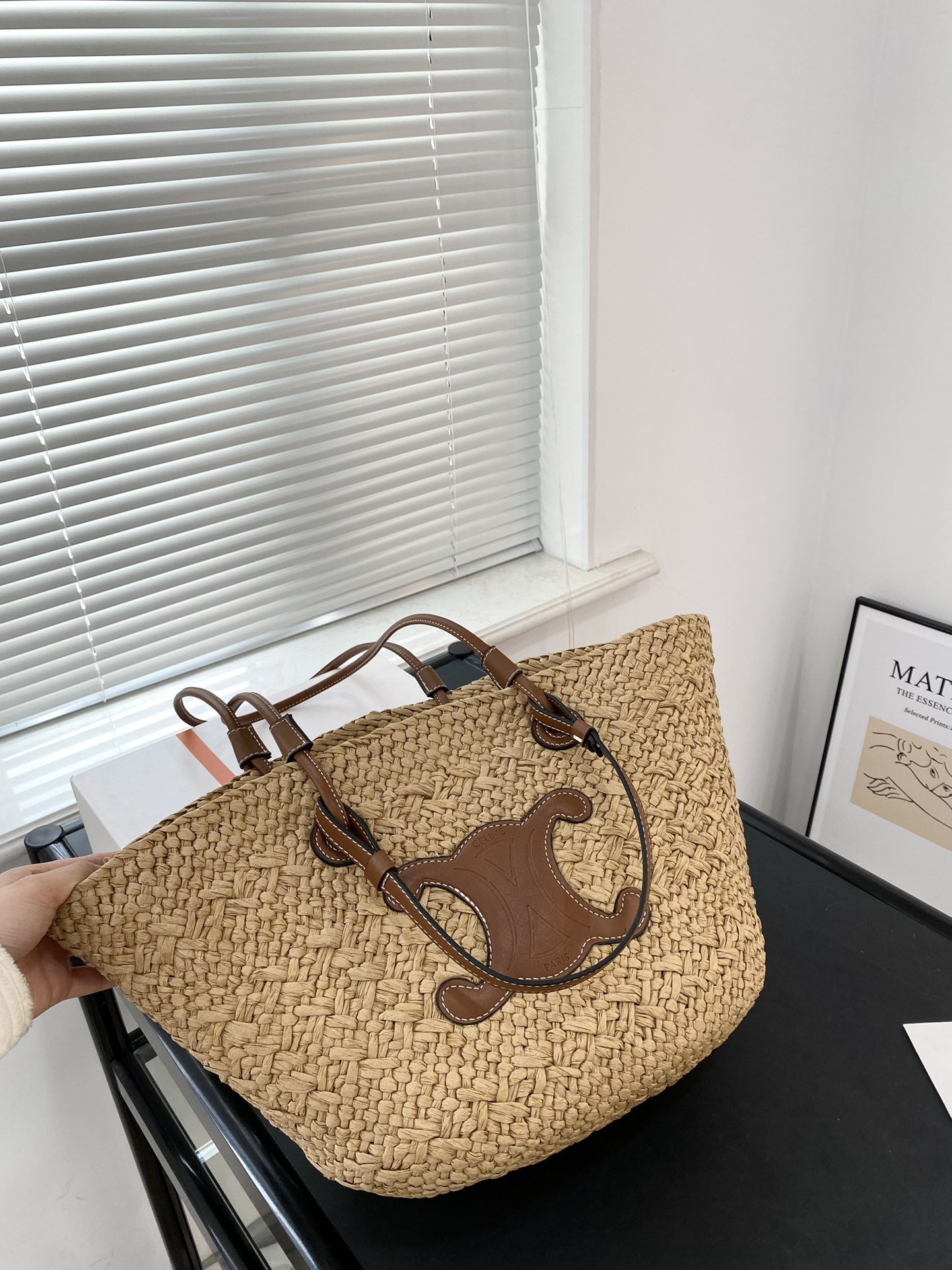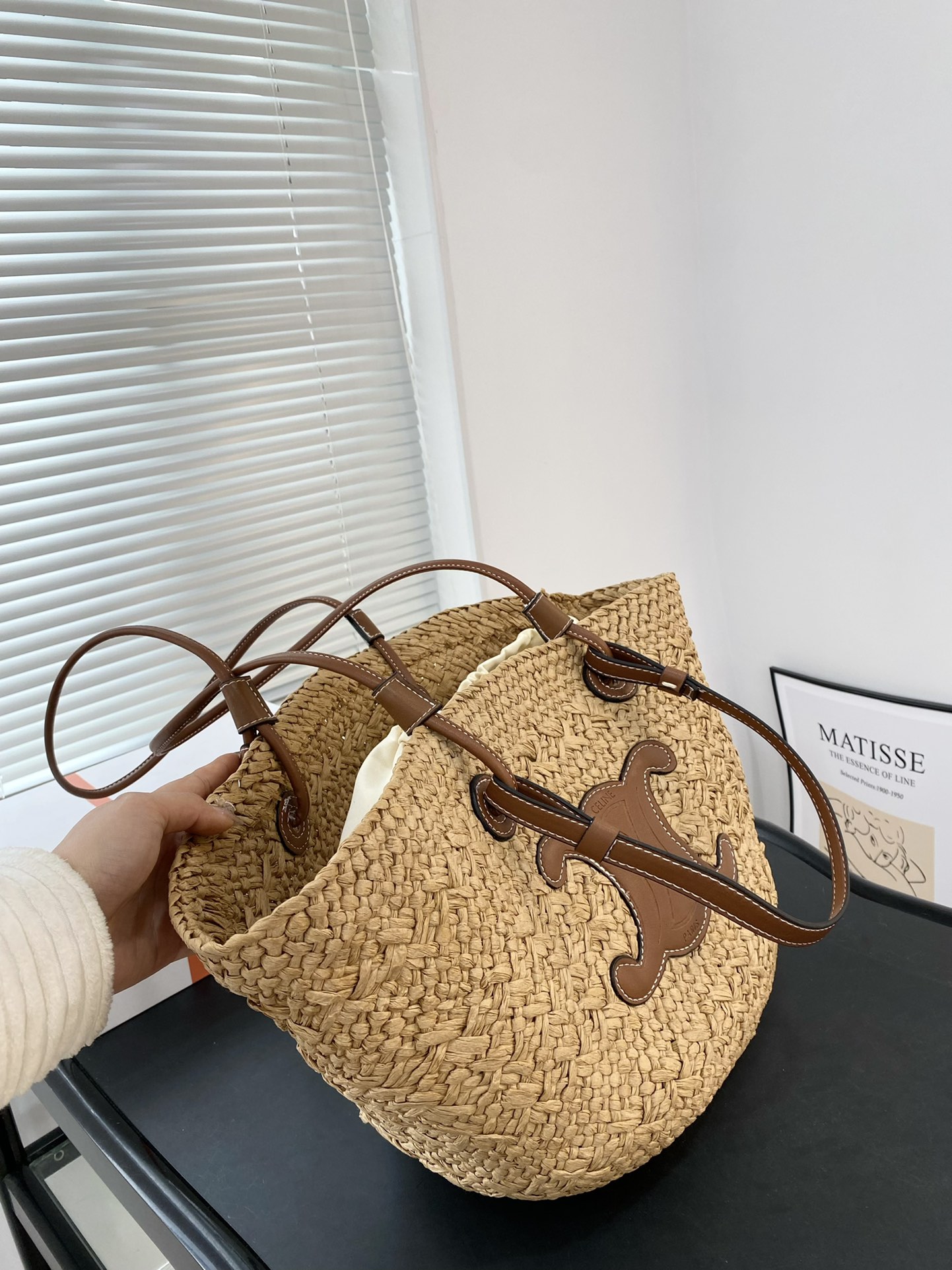 Celine Triomphe Panier In Raffia And Calfskin Tan 31Cm