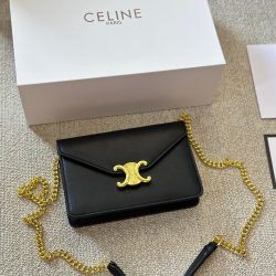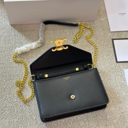 Celine Wallet On Chain Margo In Shiny Calfskin Black 20Cm 10L033Dpv 38No