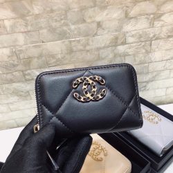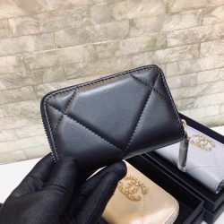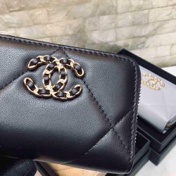 Chanel 19 Card Holder With Zipper Leather Black Wallet