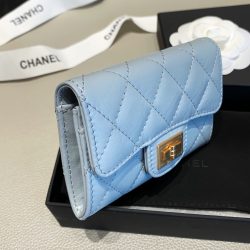 Chanel 2.55 Flap Card Holder Light Blue Wallet