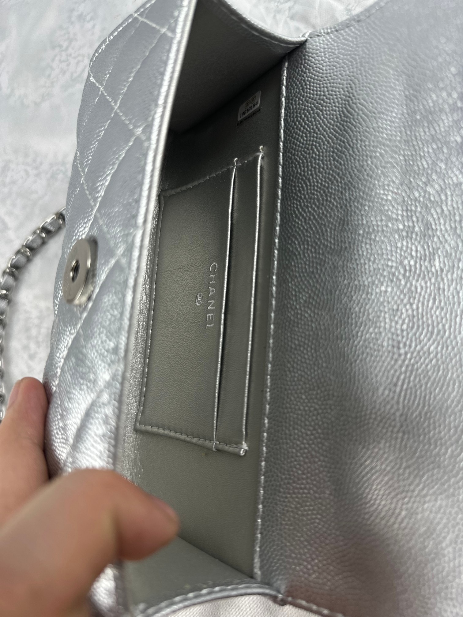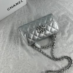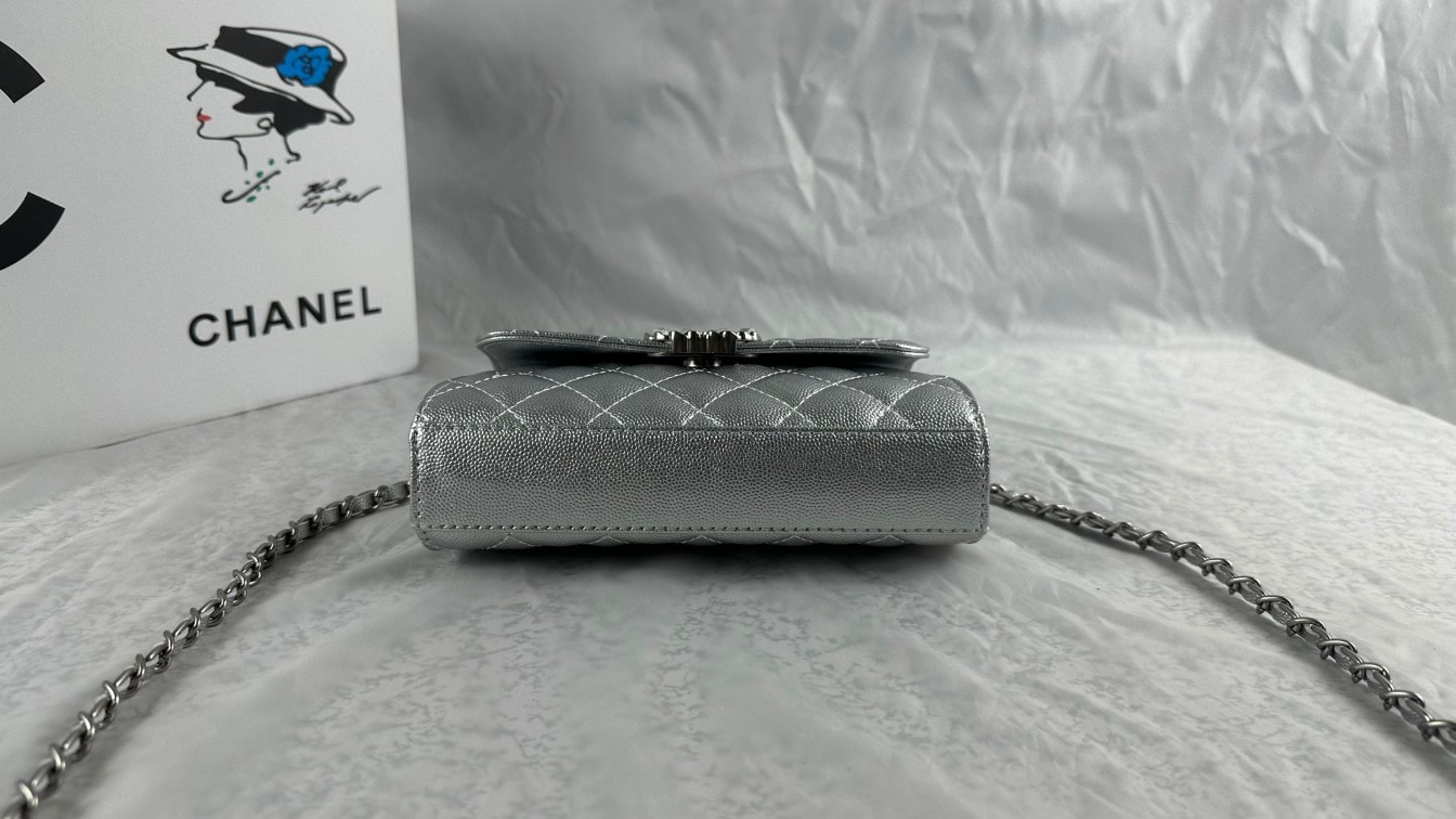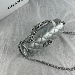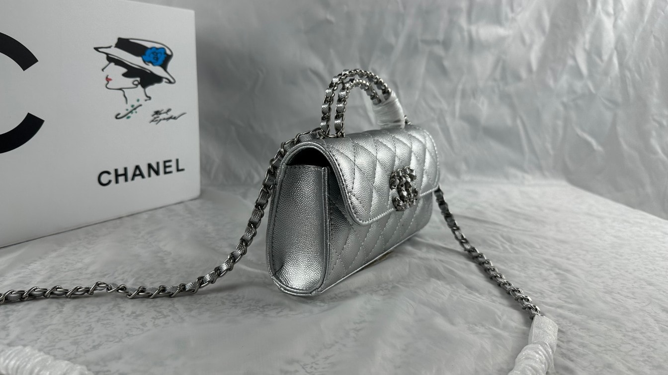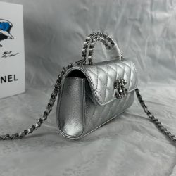 Chanel 23P Clutch With Chain Bag With Top Handle Silver 19Cm