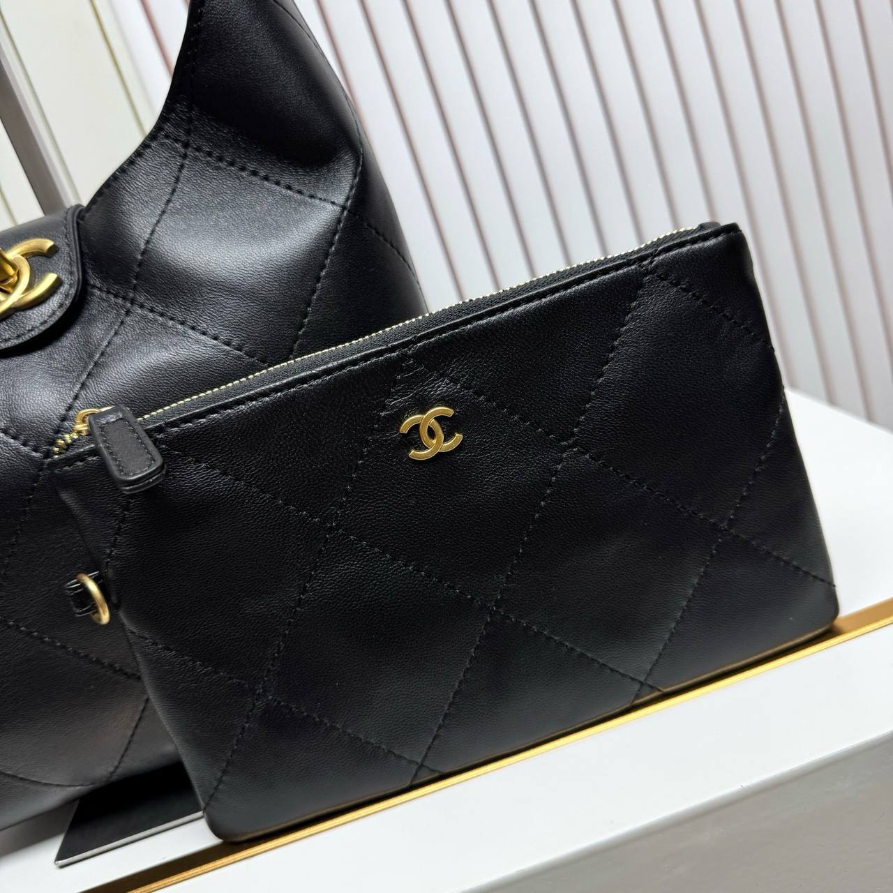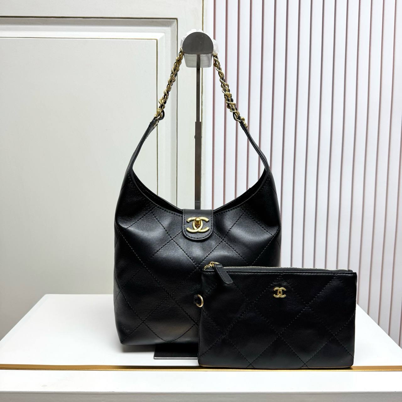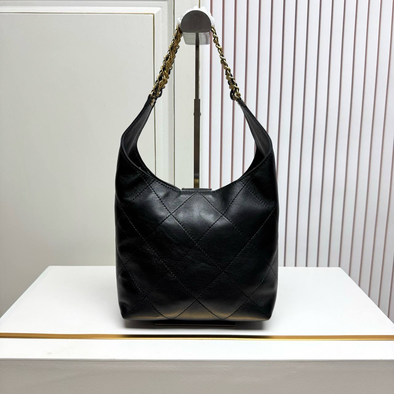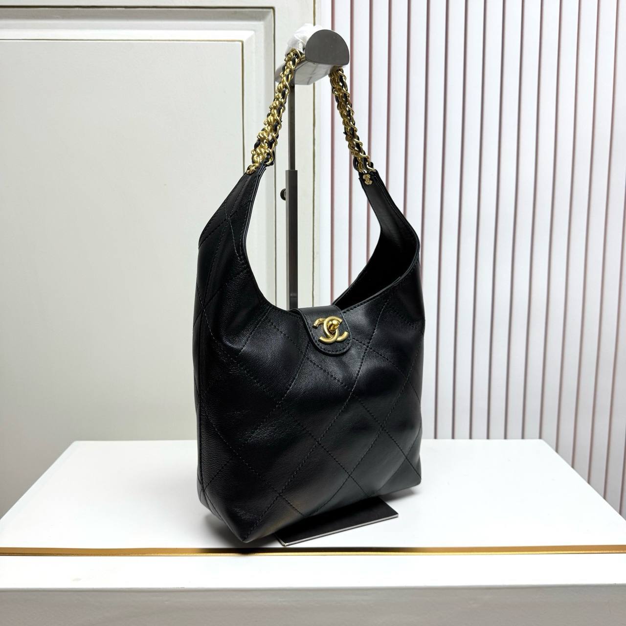 Chanel Black Lambskin Quilted Braided Chain Hobo Bag Aged Gold Hardware