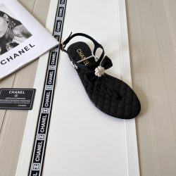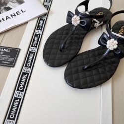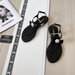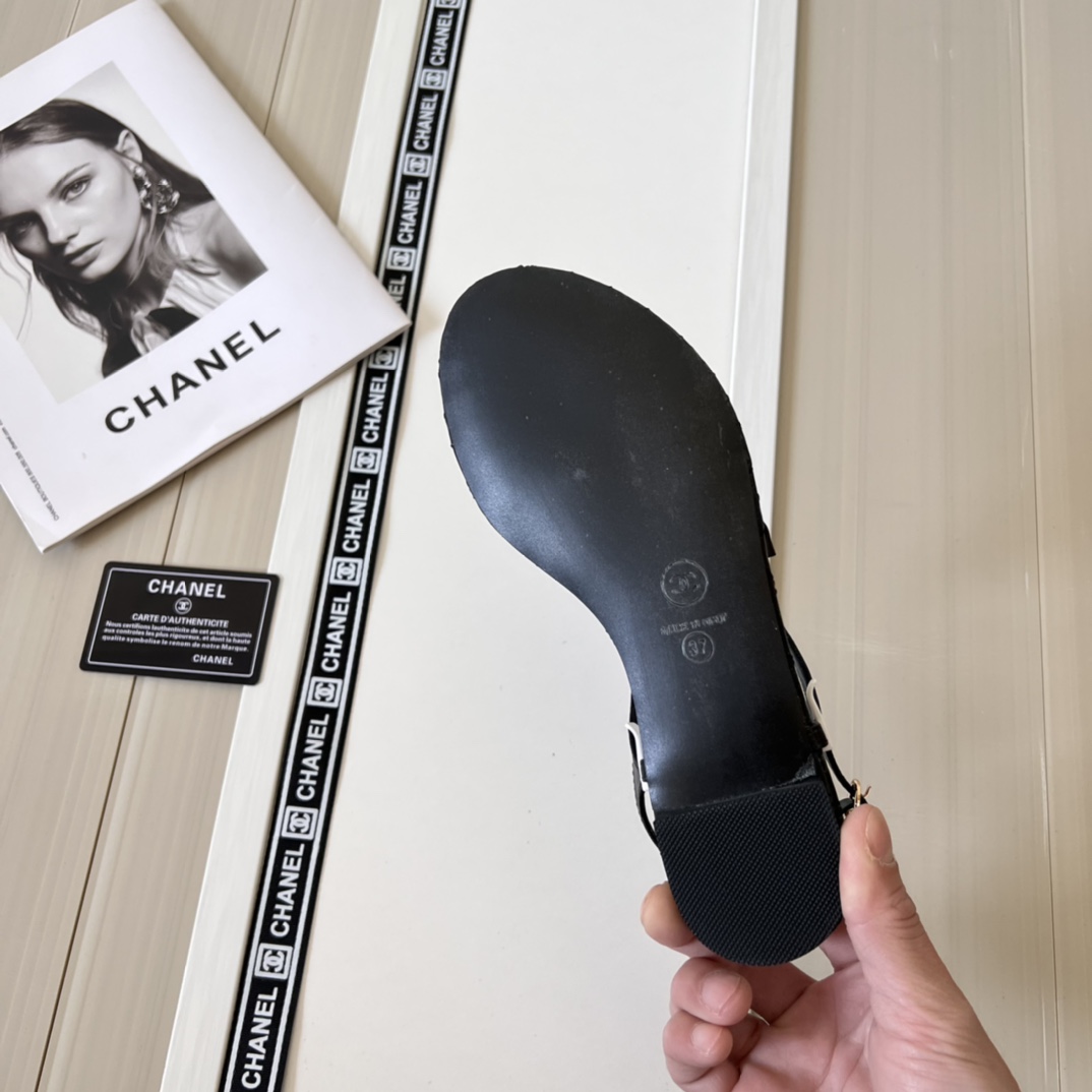 Chanel Black Quilted Leather With White Camellia Cc Logo Sandals G45258 X01000 94305