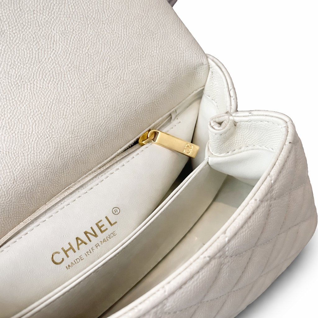 Chanel Caviar Elaphe Quilted Mini Coco Handle Flap Ivory 23Cm