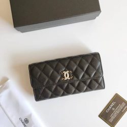 Chanel Cc 19 Quilted Black Leather Wallet