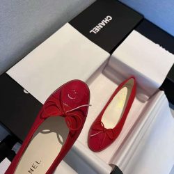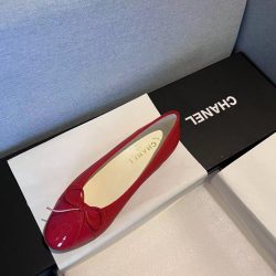 Chanel Cc Cap Toe Ballet Flats In Light Red Patent Leather
