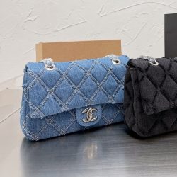 Chanel Cc Chain Flap Quilted Denim Jumbo Blue 25Cm