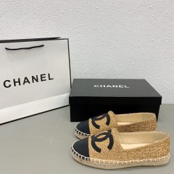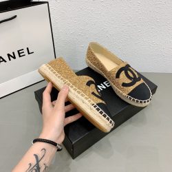 Chanel Cc Espadrilles Tweed Slip On Crinkled Beige