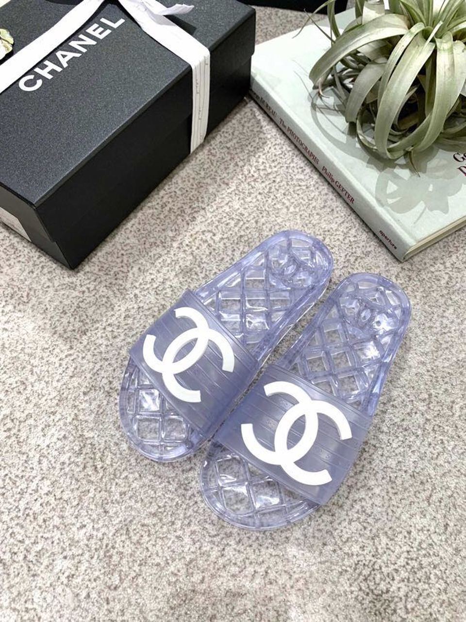Chanel Cc Glossy Transparent Slippers