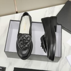 Chanel Cc Nib Turnlock Moccasins Flat Loafers Black