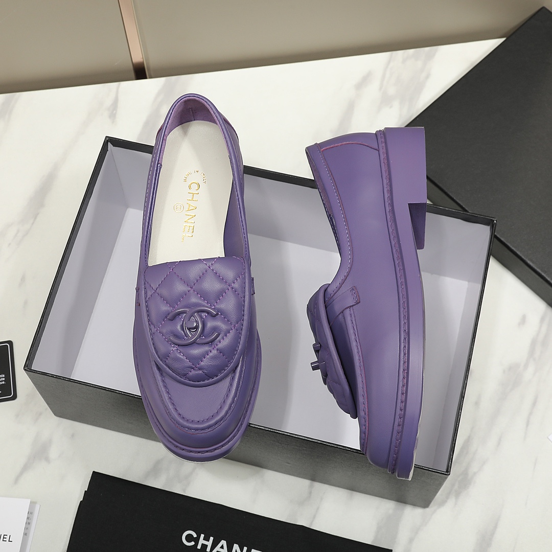 Chanel Cc Nib Turnlock Moccasins Flat Loafers Purple G45474 B15482 Nt971