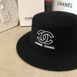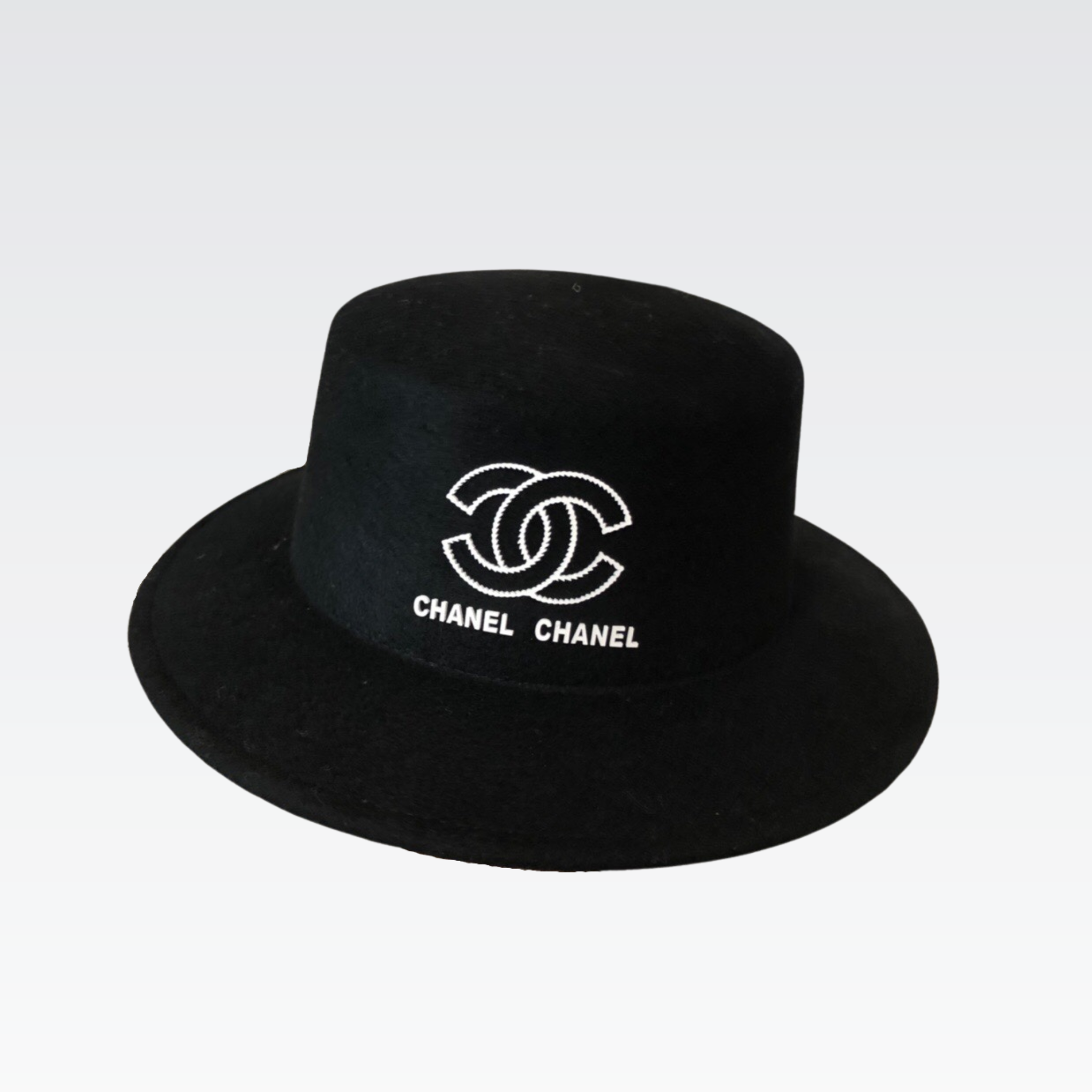 Chanel CC Wide Brim Wool Hat Black