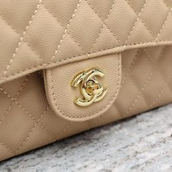 Chanel Classic Grain Gold Hardware Handbag Beige 25Cm A01112