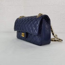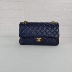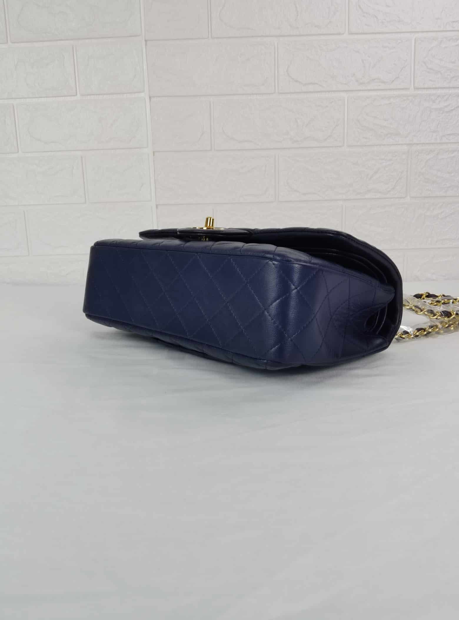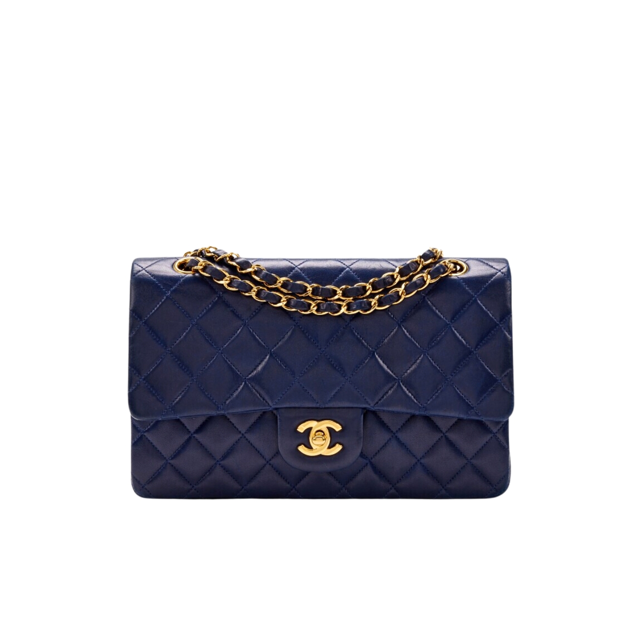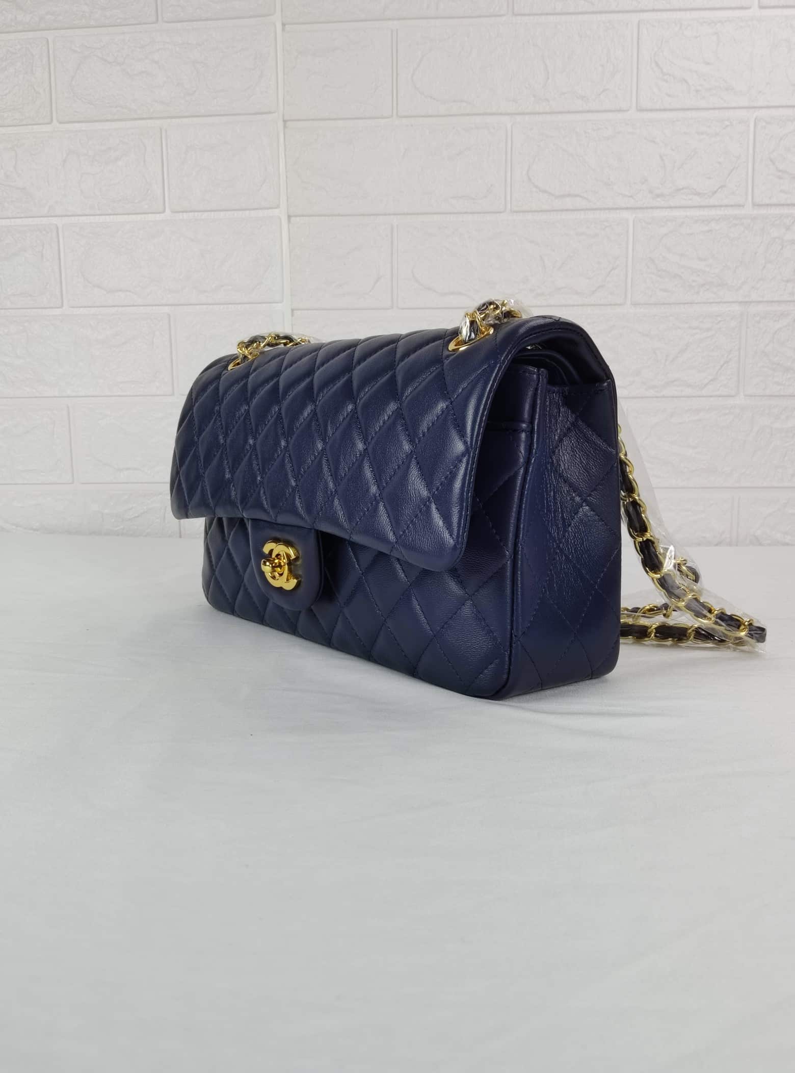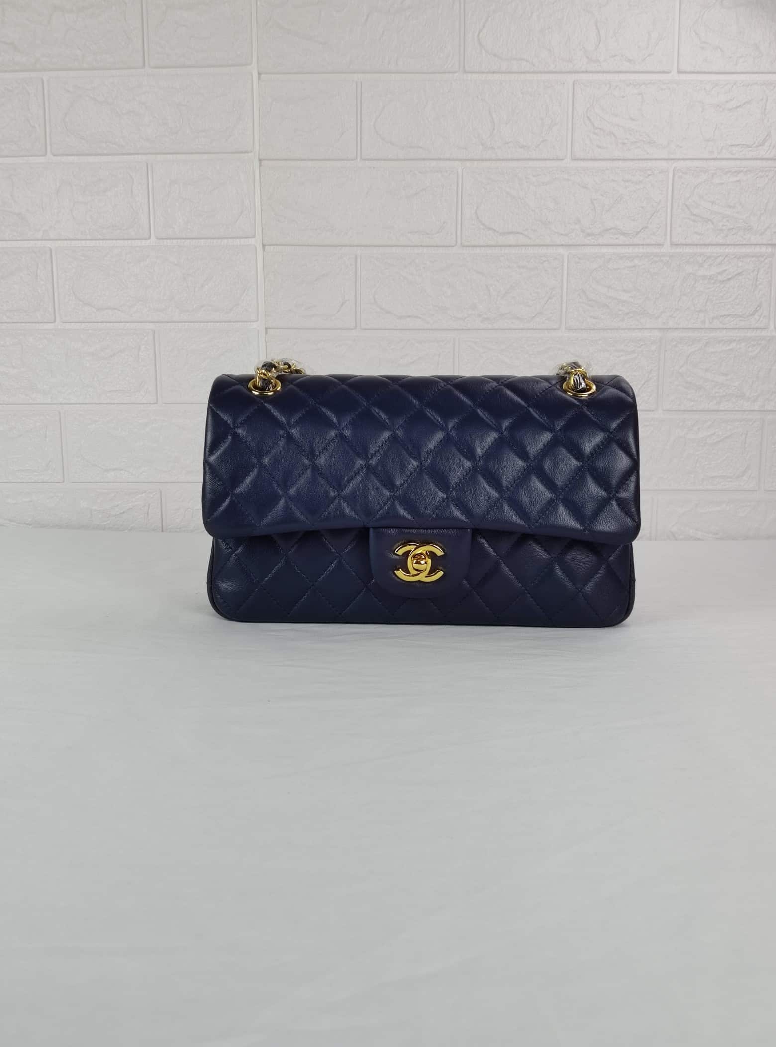Chanel Classic Medium Lambskin Flap Navy And Gold 25Cm