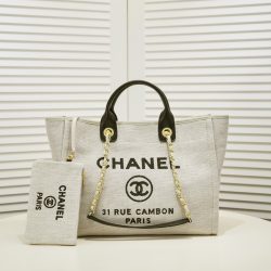 Chanel Deauville Shopping Tote Bag Grey 37Cm