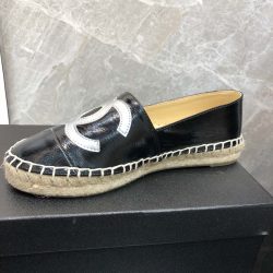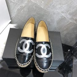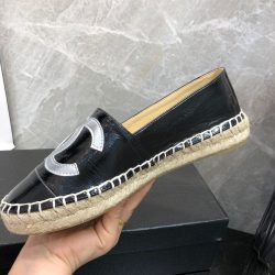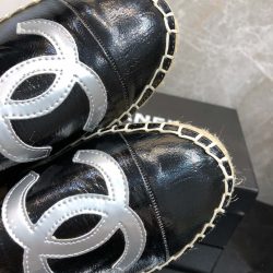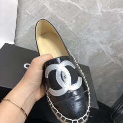 Chanel Embroidered Espadrille Leather Cap Toe Flats Black Cc