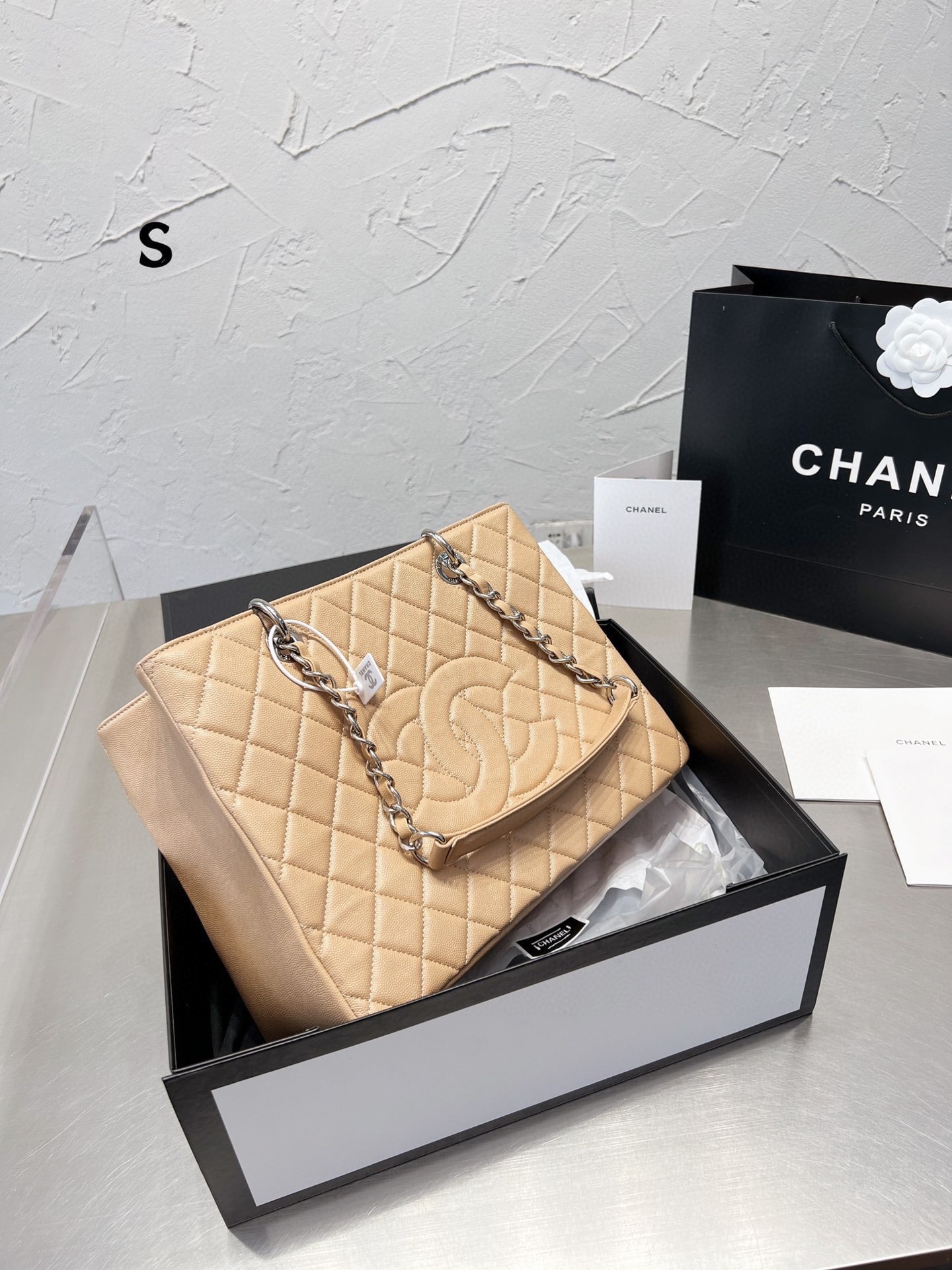 Chanel Grand Shopping Tote Bag Beige Caviar 34Cm