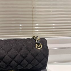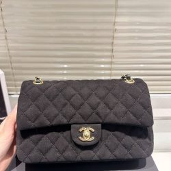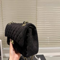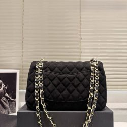 Chanel Jersey Quilted Medium Bijoux Chain Double Flap Black