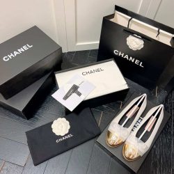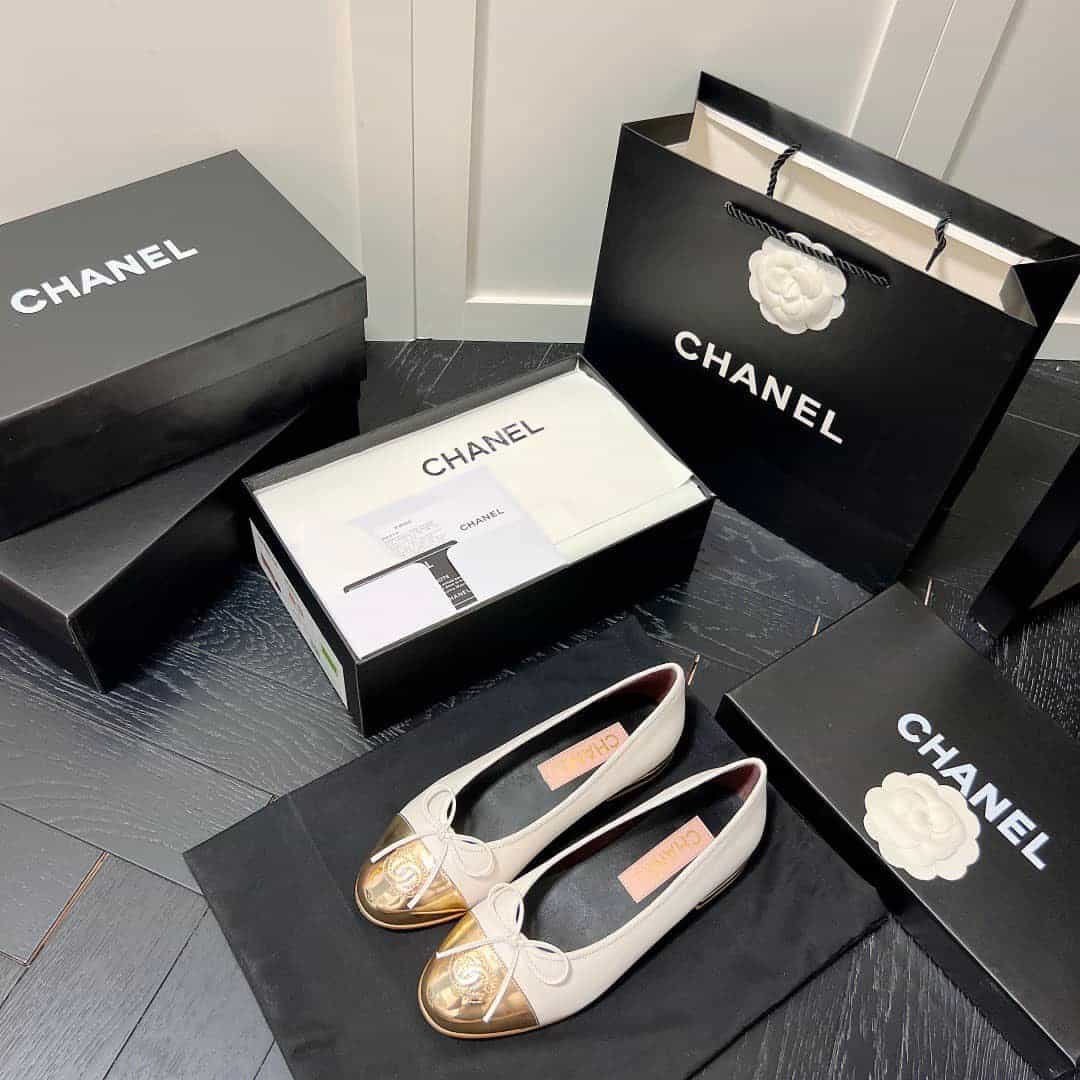 Chanel Leather Cap Toe Ballet Flats White Gold