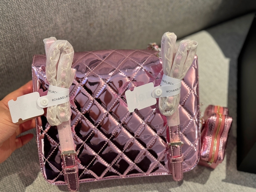 Chanel Mini Flap Bag & Star Coin Purse Pink Mirror Calfskin/Metallic Calfskin Light Gold Hardware