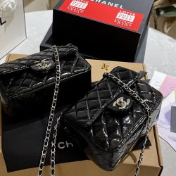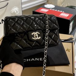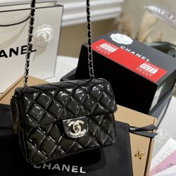 Chanel Mini Rectangular Flap Bag Patent Black 18Cm