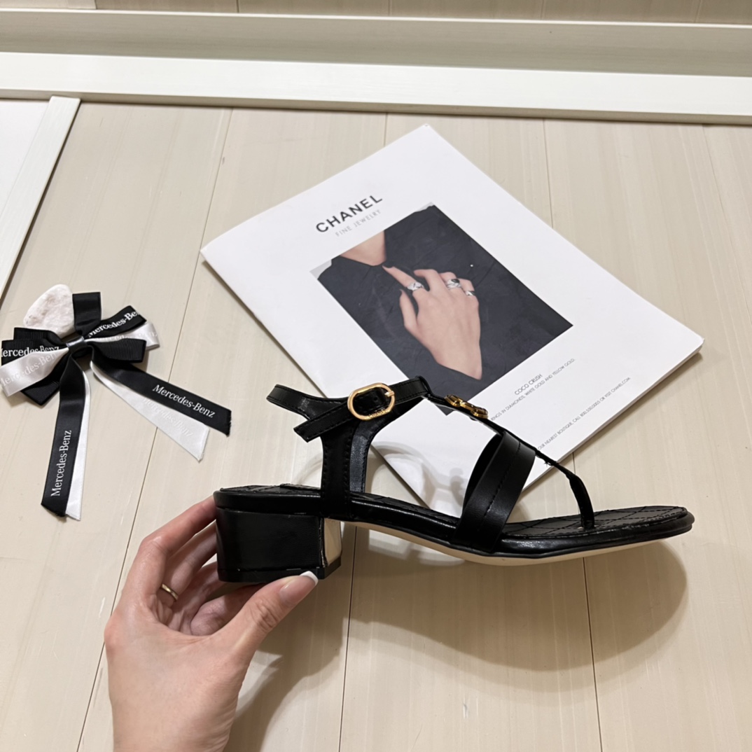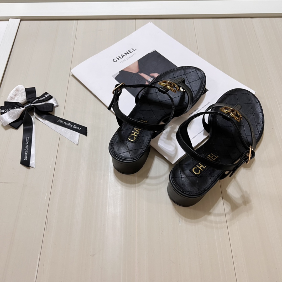 Chanel Sandal Open Round Toe Flip Flops Black