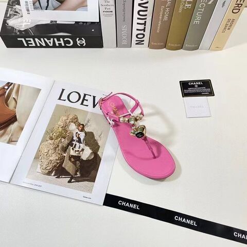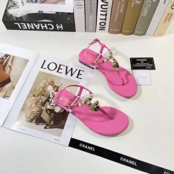 Chanel Shiny Lambskin Pearl Crystal Cc Heart Thong Sandals Pink