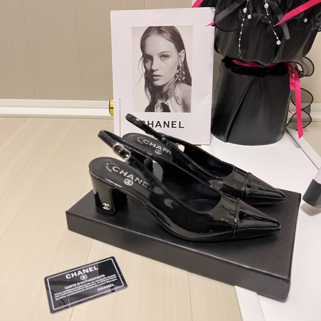 Chanel Slingbacks Heels Patent Calfskin In Black G45251 B14524 94305