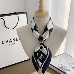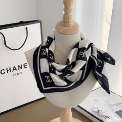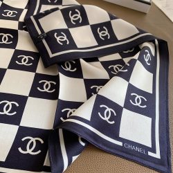 Chanel Square Motif CC Logo Silk Scarf Black And White 70cm