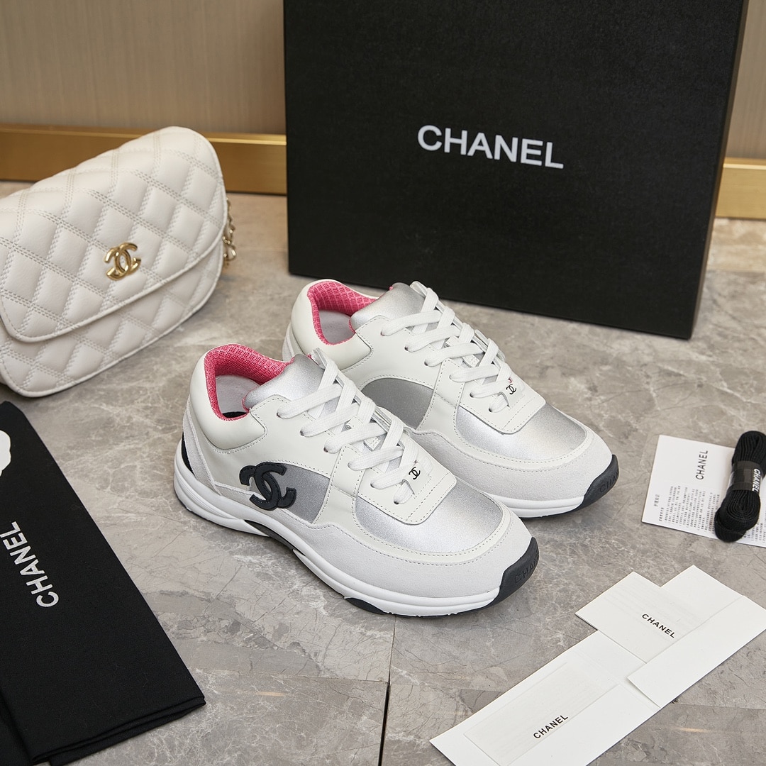 Chanel Suede And Leather Cc Low Top Sneakers White Pink