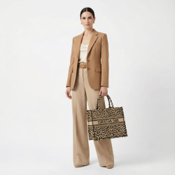 Christian Dior Canvas Mizza Large Leopard Book Tote Beige 36cm