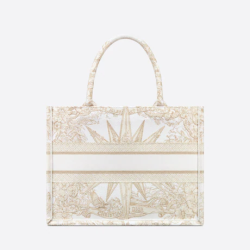 The Dior Book Tote is an original creation introduced by Dior’s Creative Director, Maria Grazia Chiuri, and has become a staple of the Dior aesthetic. Designed to hold all the daily essentials, it is fully embroidered with the Rêve d’Infini motif by artist Pietro Ruffo embellished with gold-tone metallic thread, offering a dreamlike new take on Christian Dior’s favorite star symbol and essential House code. Adorned with a ‘CHRISTIAN DIOR PARIS’ signature on the front, the medium tote exemplifies the House’s signature savoir-faire and may be carried by hand or worn over the shoulder.