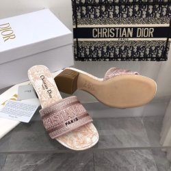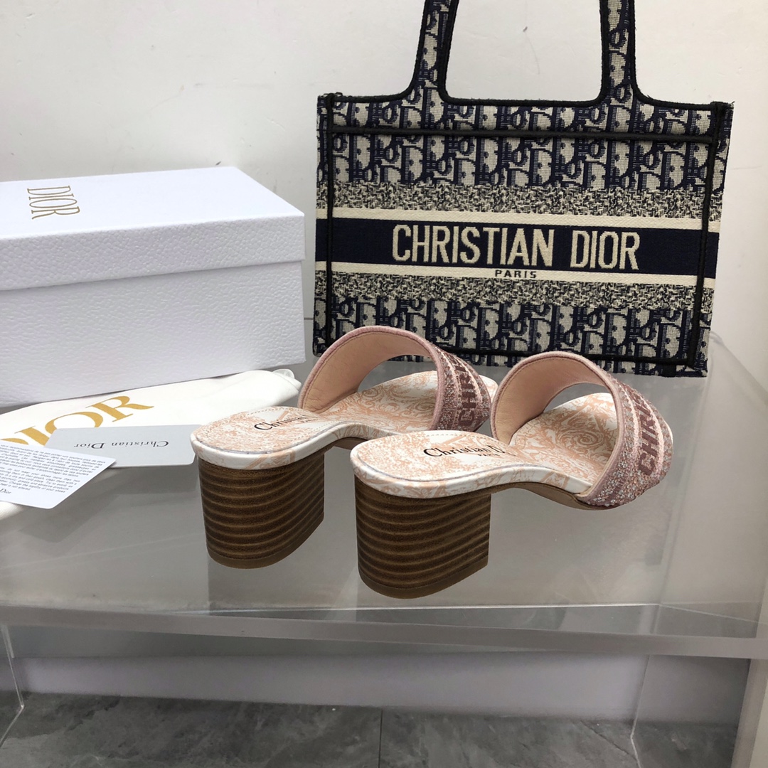 Dior Dway Heeled Slide Embroided Cotton Pink