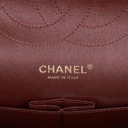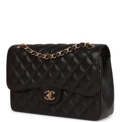 This Double Flap bag is in black leather with tone hardware and features a front flap with signature turnlock closure. half moon back pocket. and adjustable interwoven tone link and?black leather shoulder strap.