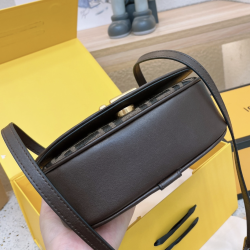 - Embellished with embossed details and edges in brown leather and an FF logo on the flap.