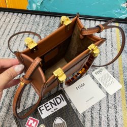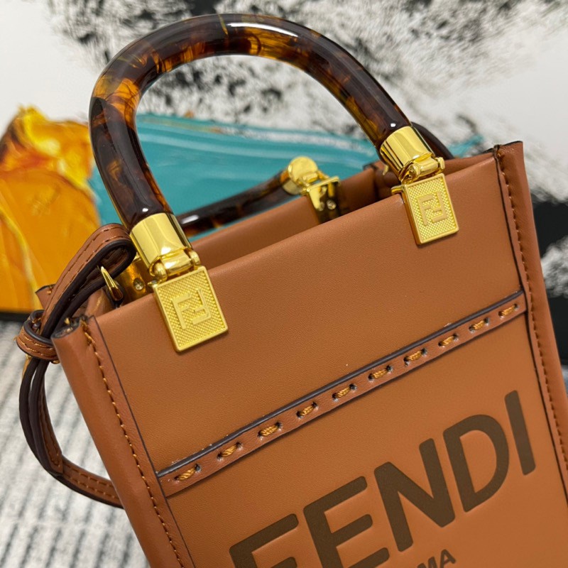 Fendi Mini Sunshine Shopper Leather Bag Brown 18Cm 8Bs051