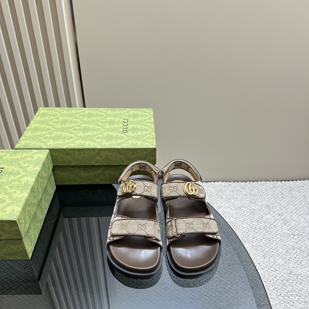 Gucci Double G Sandal Beige And Ebony 771575 G1730 9755