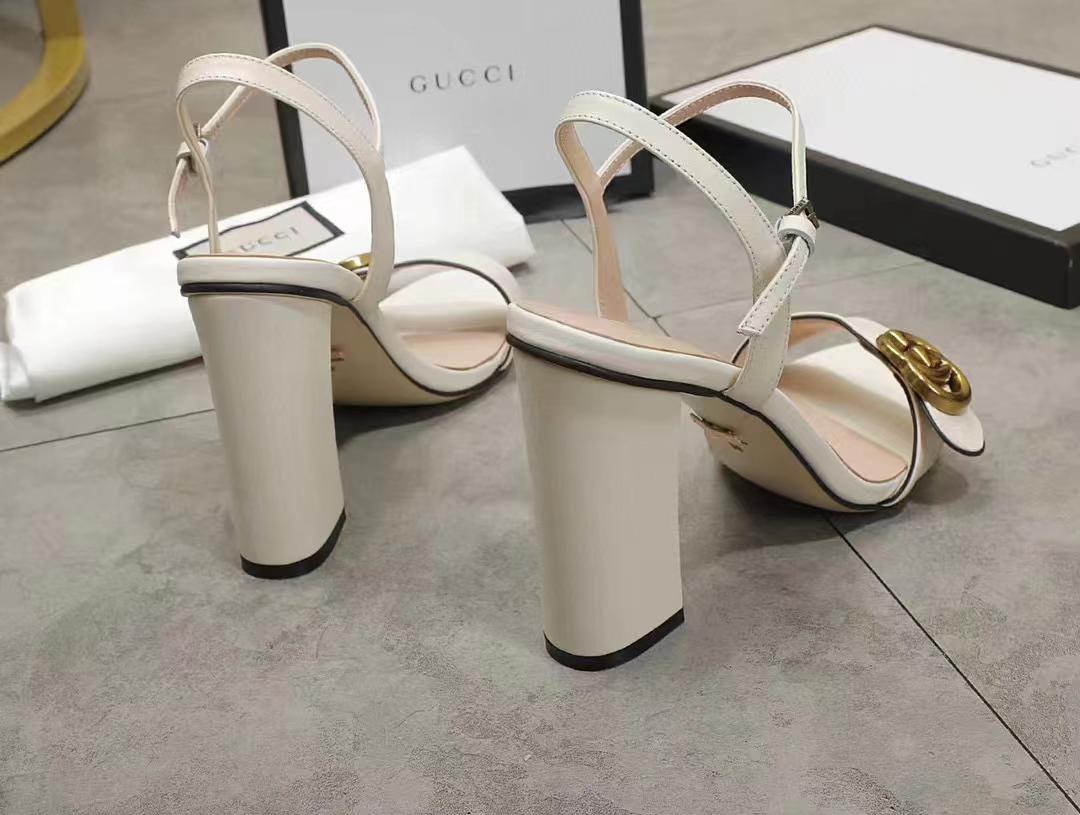 Gucci Double G White Leather Sandal ?453378 A3N00 9022