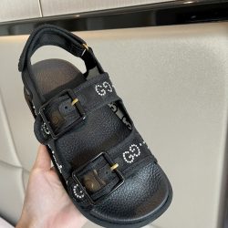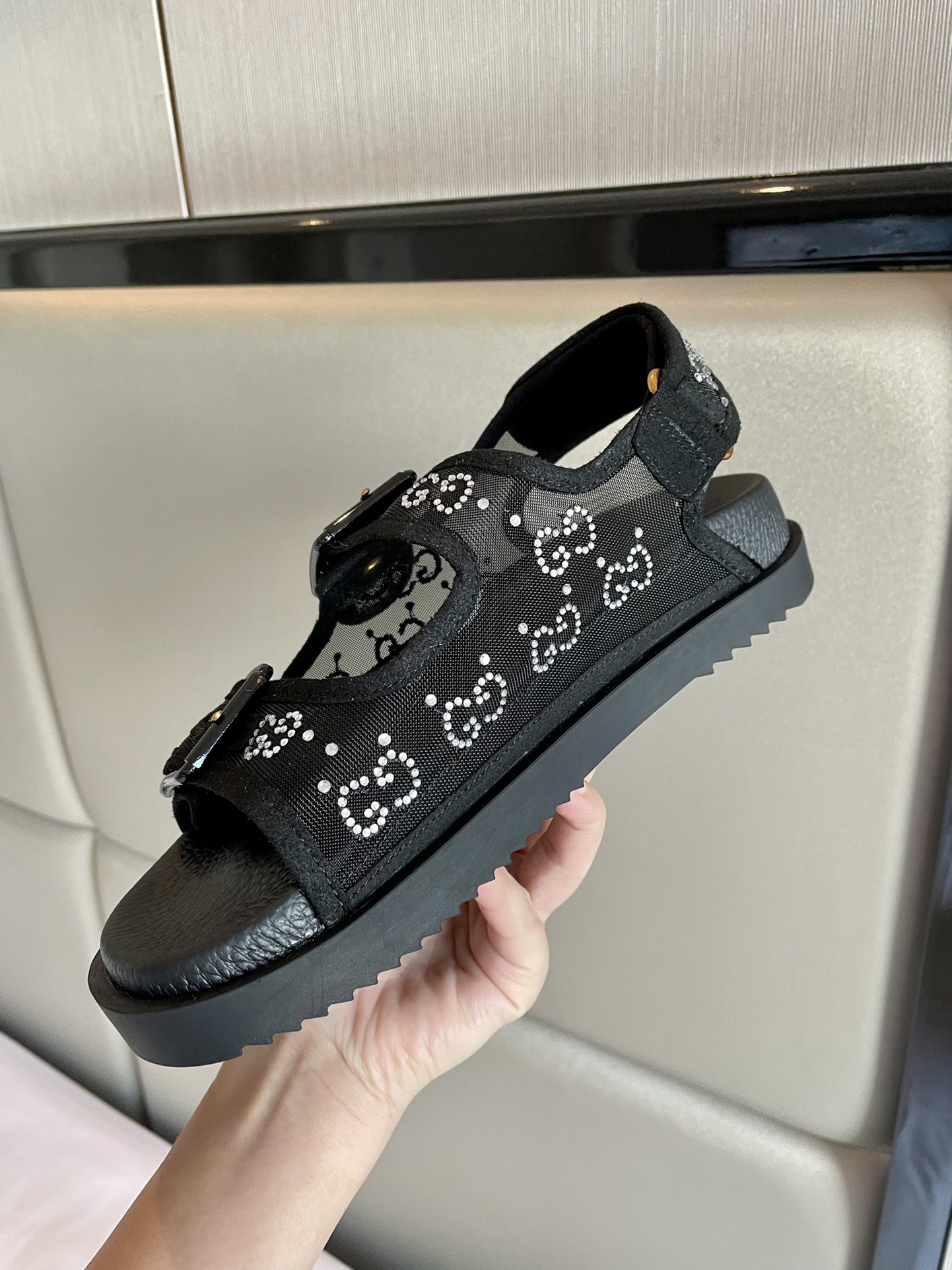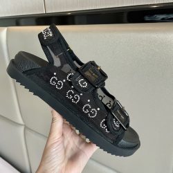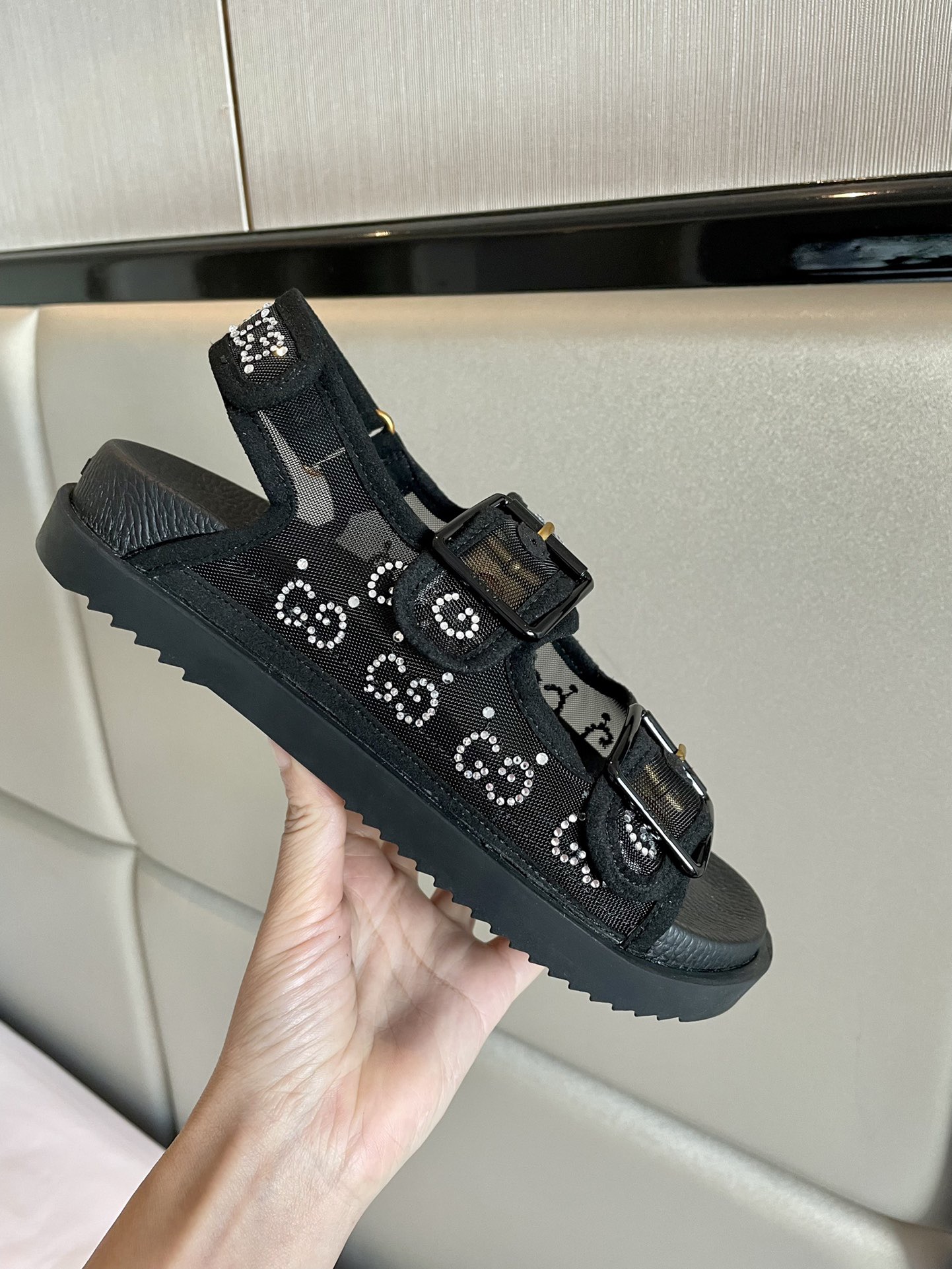 Gucci Gg Sandal With Crystals Black 701158 F13A0 1000