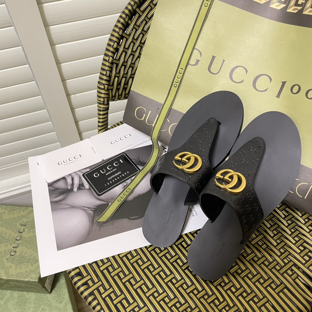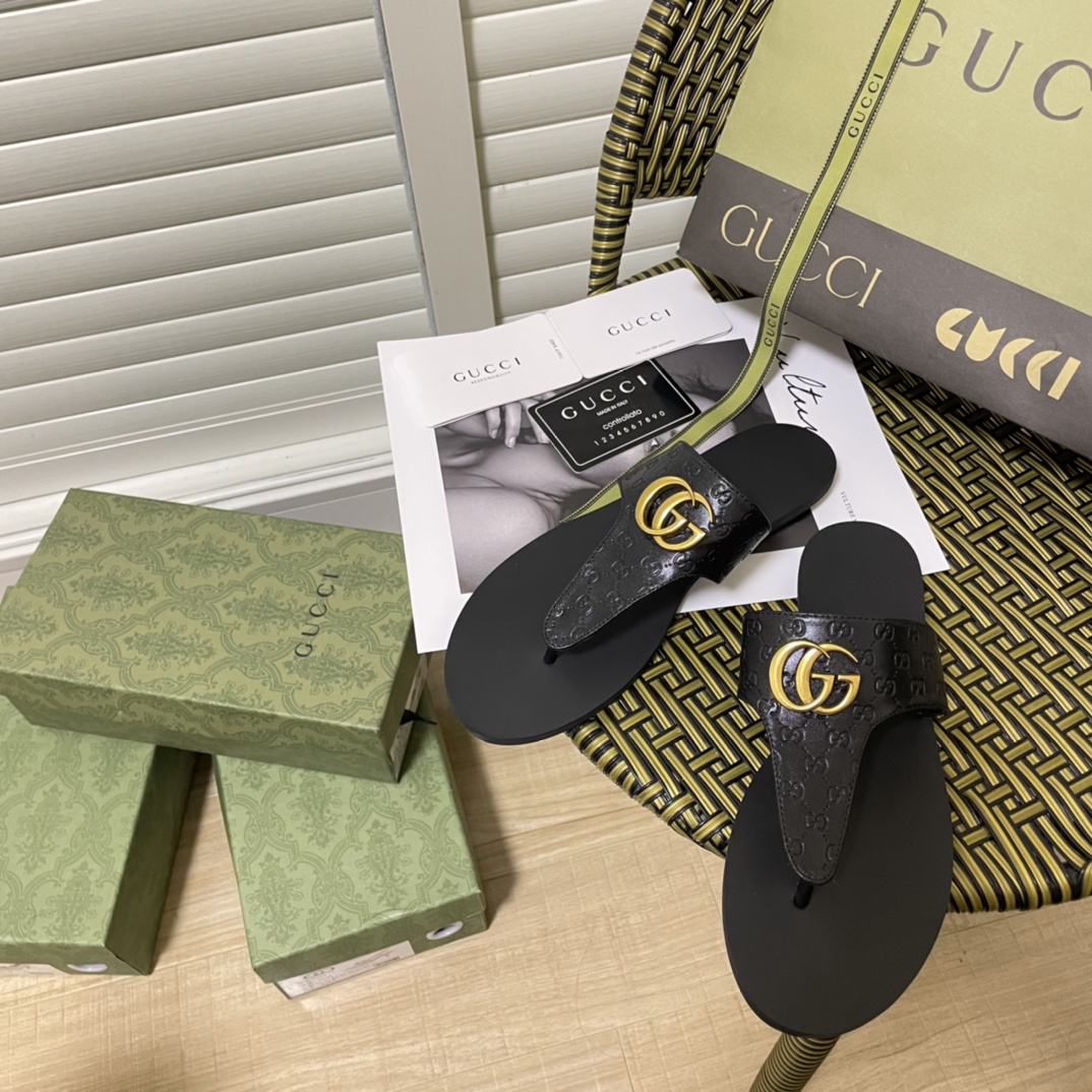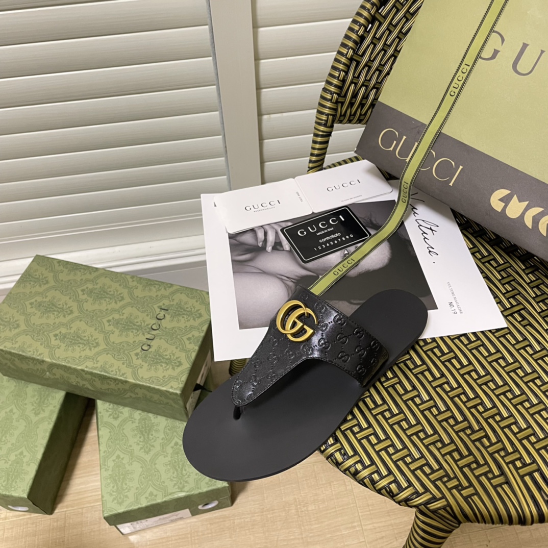 Gucci Gg-Stud Leather Thong Sandals Black