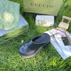 Gucci Men’S Slip On Sandal Black Gg Rubber 655517 Jfb00 1000