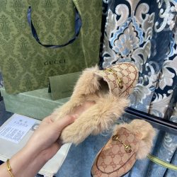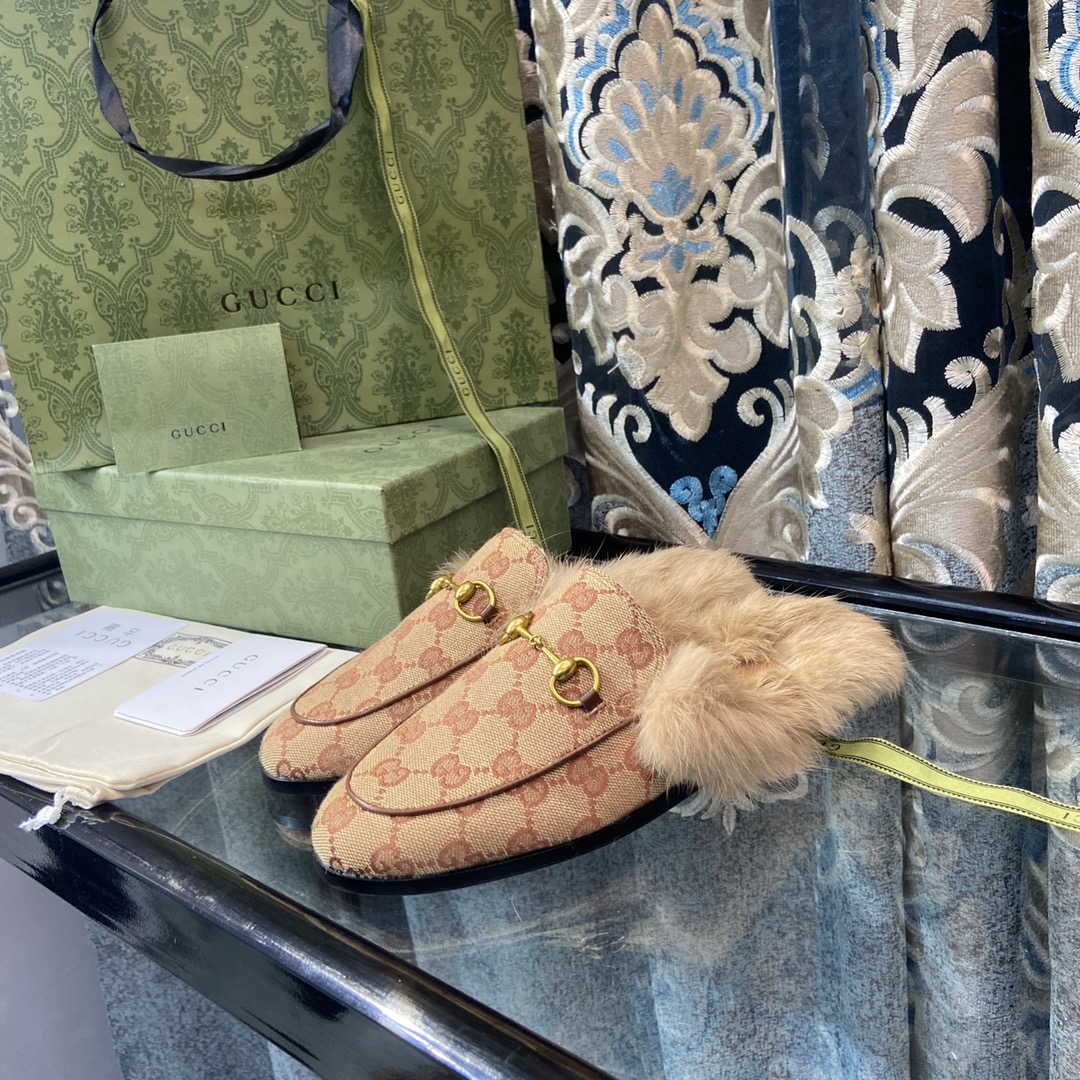 Gucci Princetown Lamb Fur Slippers Rust Natural