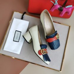 Gucci Wmns White And Blue Leather Mid-Heel Pump