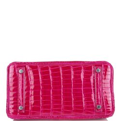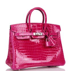 Hermes Birkin 25 Rose Mexico Shiny Porosus Crocodile Palladium Hardware