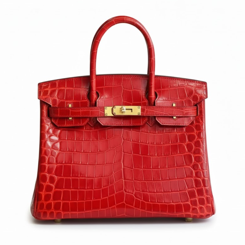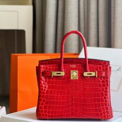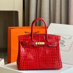 Hermès Birkin 30 in Shiny Porosus Crocodile Leather in Rouge Vif with Gold Hardware
